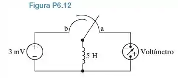 da Figura P6.12, quando ele foi ligado aos terminais do voltímetro. Em t = 0, a chave do