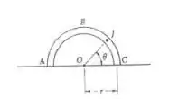Meia seção de um tubo, com peso P e comprimento unitário, repousa sobre uma superfície horizontal lisa. Determine as forças internas no ponto J em termos de P , r e .