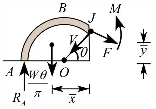 Onde, a reação em A é , o peso do tubo de meia seção é W e o raio do tubo é r.