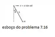 O ponto de suporte de um pêndulo simples de massa m e comprimento b é acionado horizontalmente por . Encontre a equação de movimento do pêndulo.