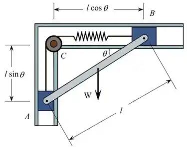 Uma vez que a componente horizontal de A , C e a componente vertical de B não realizam nenhum trabalho . Pelo principio do trabalho virtual, a energia potencial é