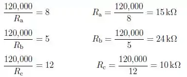 Comece escolhendo um resistor de realimentação (Rf) do Apêndice H. A seguir, escolha resistores individuais do Apêndice H ou construa redes de resistores dentre os valores listados no Apêndice H para satisfazer aos especificados para Ra, Rb, Rc e Rd. Desenhe o diagrama de seu circuito final.