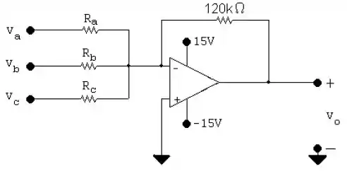 Projete um amplificador somador inversor de modo que