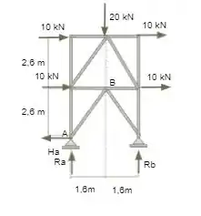 Para começarmos a calcular as reações normais por este método devemos escolher o melhor ponto para realizar o corte, lembrando que só pode-se cortar três barras e é melhor que mais de uma barra seja direcionado ao mesmo nó. Sendo assim, o melhor corte a ser realizado é o representando na imagem abaixo.