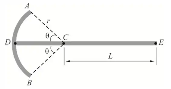 Sabenso que o objeto da figura é formado por um arame fino e homogêneo, determine o comprimento I da parte CE do fio de modo que o baricentro da figura fique localizado no ponto C, quando (a) e (b) .