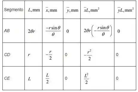 As coordenadas do centroide de cada segmento de linha, calcularemos seus primeiros momentos em relação aos eixos coordenados