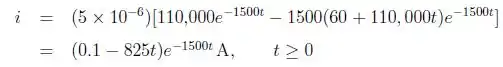 A corrente inicial no capacitor é 100 mA. Assuma a convenção passiva.