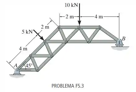 F5.3. A treliça é suportada por um pino em A e um rolete em B. Determine as reações dos apoios.