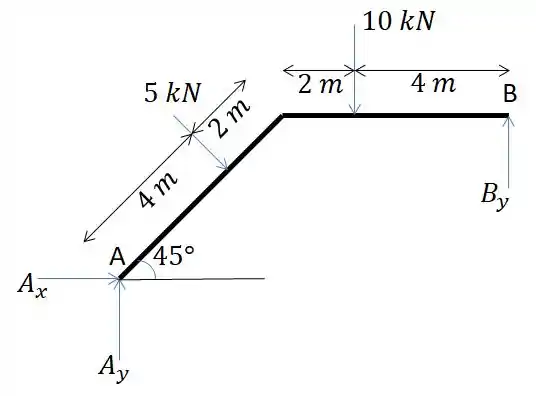 Repara que o no ponto A tem duas componentes pra gente achar, então vamos fazer o balanço de momento no ponto A mesmo (que a gente acha depois essas componentes) e já cai matando pra achar...