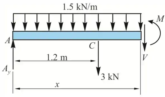 Considerando uma seção entre AC a uma distância x de A