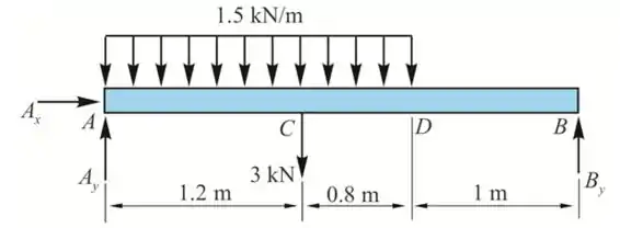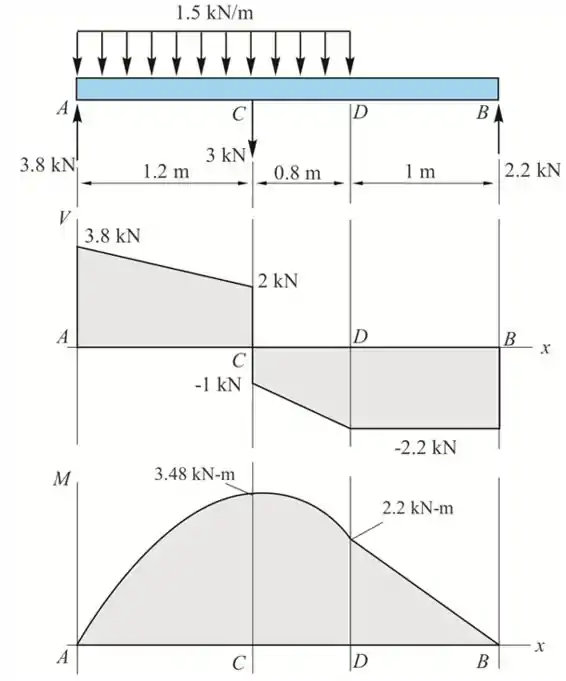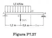 Trace os diagramas de força corta cortante e momento fletor para a viga AB.