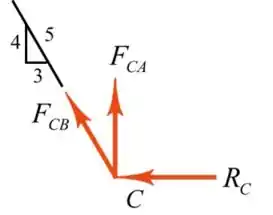 Desenharemos o diagrama de corpo livre da junta C como mostrado a seguir