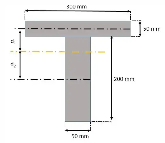 Já para o eixo vamos precisar aplicar o teorema dos eixos paralelos porque o eixo não coincide com os centroides, por isso é importante achar a distância da fórmula.