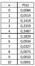 Primeiramente vamos definir os parâmetros do problema: n = 10; p = 0,38; q = 0,62.
