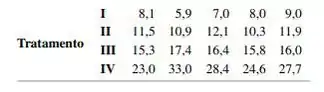 Os dados correspondentes sobre a concentração de fósforo na superfície do solo para quatro diferentes tratamentos de solo apareceram no artigo "Fertilisers for Lotus and Clover Establishment on a Sequence of Acid Soils on the East Otago Uplands" ( . Zeal. J. Exper. , p. 119-129). Utilize um procedimento livre de distribuição para testar a hipótese nula da não-diferença na média real da concentração de fósforo (mg/g) para os quatro tratamentos de solo.