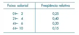 O Departamento Pessoal de uma certa firma fez um levantamento dos salários dos funcionários do setor administrativo, obtendo os resultados (em salários mínimos) da tabela abaixo.