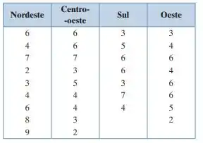 Ok, agora, nós vamos ter que achar as médias e as variâncias para cada região. Começando pela região Nordeste: