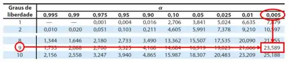 Com esses valores encontrados, que representam a curva qui-quadrado à direita (0,005 e 0,995) e os graus de liberdade (), iremos encontrar os valores críticos, da seguinte maneira:
