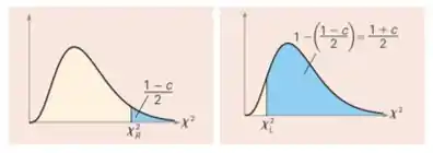 Os valores críticos de qui-quadrado ( e ) com um nível de confiança , são os que iremos consultar na Tabela, através das áreas à direita.