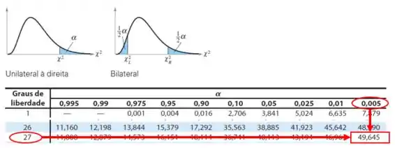 Um fabricante de parafusos produz um tipo de parafuso para ser usado em recipientes herméticos. O fabricante afirma que a variância da espessura do parafuso é de no máximo 0,01. Uma amostra aleatória de 28 parafusos tem uma variância de 0,064. Para , há evidência suficiente para rejeitar a afirmação do fabricante?