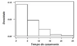 O número de divórcios na cidade, de acordo com a duração do casamento, está representado na tabela abaixo.