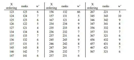 Como quando é verdadeiro, a probabilidade de qualquer ordenação particular é 1/35, obtemos facilmente a distribuição nula e os valores críticos dados na seção de resposta.