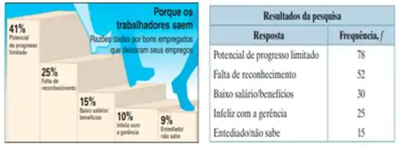 10. Razões da saída de trabalhadores Um diretor de pessoal afirma que a distribuição das razões da saída de trabalhadores de seus empregos é diferente da distribuição mostrada na figura a seguir. Você seleciona aleatoriamente 200 trabalhadores que deixaram seus empregos recentemente e registra a razão que levou cada um a fazê-lo. A tabela a seguir mostra os resultados. Com a = 0,01, teste a afirmação do diretor de pessoal. (Fonte: Robert Half International, Inc.).