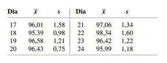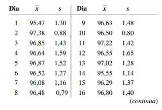 A tabela a seguir fornece médias amostrais e desvios padrão, cada um baseado em observações do índice refratário do cabo de fibra óptica. Construa um gráfico de controle e comente sobre sua aparência. [Sugestão: e