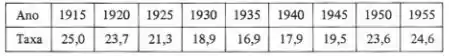 Nessa questão do livro do Mauri guerra de estática indutiva dada a taxa de natalidade por pessoas, nos Estados Unidos, no período . Está mostrada na tabela a seguir: