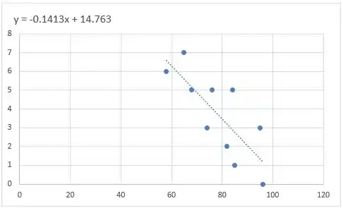 Ao realizarmos a inversão dos eixos, a inclinação permanece (retas decrescentes) pois o sinal do coeficiente angular é negativo em ambos os gráficos, mas os valores dos coeficientes, tanto o angular como o linear, mudam drasticamente.