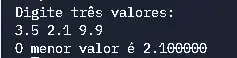 Achar o mínimo. Escreva uma função que retorne o menor de três números em ponto flutuante.