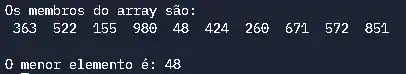 Vamos escrever um programa que contenha uma função que seja capaz de retornar o menor valor inteiro de um array. Para isso vamos criar a função recursiveMinimum recursiva que irá percorrer todos os valores do array verificando sempre o atual elemento com o anterior e retornando o menor elemento encontrado.