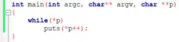 Quando escrevemos while(*p), é a mesma coisa que escrever while(1), o que significa um laço “infinito”. Dentro deste laço, basta colocar um comando puts, para imprimir a string, e incrementamos p para fazê-lo com as linhas subsequentes.