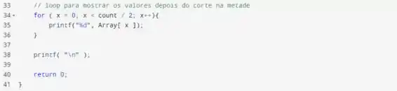 array. Em seguida, realoque a memória do array à metade do número atual de elementos. Imprima os valores