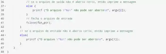 11. Se os arquivos não abrirem corretamente, imprima uma mensagem de erro.