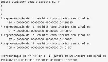 Compactação de caracteres em um inteiro. Se o