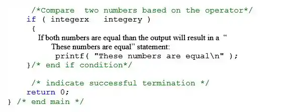 Compare inteiro X e inteiro Y, colocando o operador aritmético "igual a" entre o inteiro: