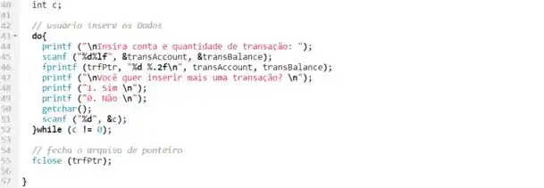 3. A gravação é inserida pelo usuário para o arquivo de transação usando loop do-while.