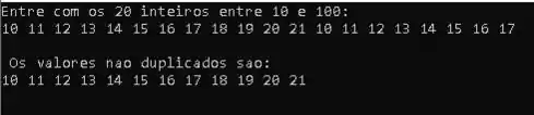 printf("\n Os valores não duplicados são: \n");