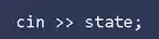 - Para ler uma string no estado da variável da matriz de caracteres, usaremos o fluxo de entrada cin e o operador de extração >>. Isso é