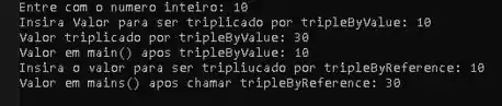 Primeiro vamos escrever as duas funções para depois chamar elas dentro da função principal main() que irá pedir para o usuário inserir os valores para ser triplicado. A função tripleByValue ficará da seguinte forma: