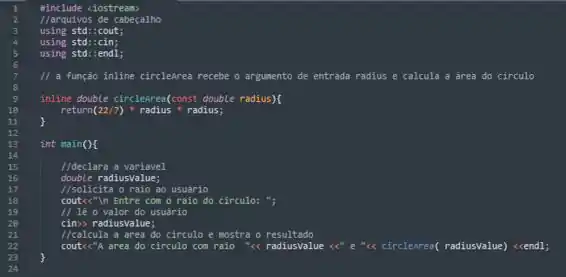 // a função inline circleArea recebe o argumento de entrada radius e calcula a área do círculo