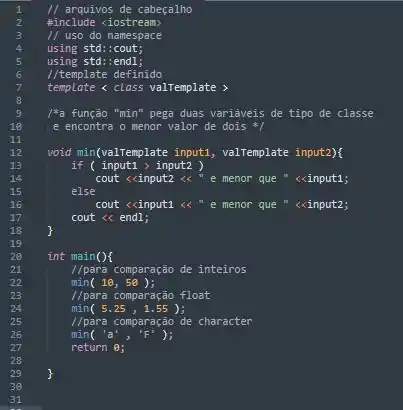 O nosso programa irá avaliar o mais baixo de dois valores passados, utilizando template em C++. Os tipos dos valores verificados serão inteiros, character e float. Então vamos escrever nosso programa.