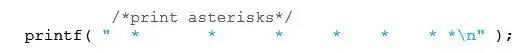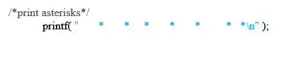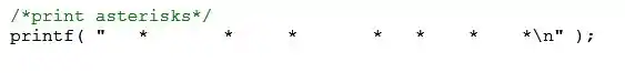 - Imprima os asteriscos tendo o cuidado de considerar os espaços entre cada um e imprima cada nova linha cantando um operador / n.