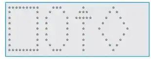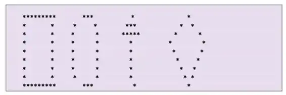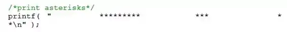 Usando as instruções printf (), imprima 7 espaços em branco e então imprima 9 asteriscos e então imprima 8 espaços em branco e imprima 3 asteriscos; a seguir imprima 10 espaços em branco seguidos de 1 asterisco e imprima 11 espaços em branco seguidos de asterisco; em seguida, mude para a próxima linha usando um \ n.