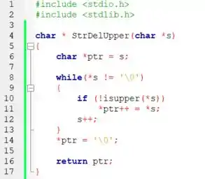 char *StrDelUpper(char*s)