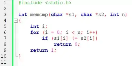 int memcmp(char *s1, char *s2, int n)