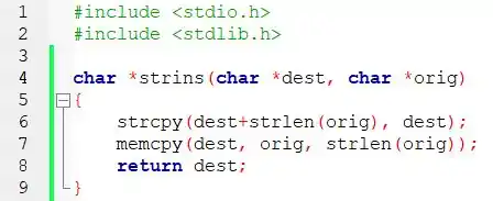 char *strins(char *dest, char *orig)
