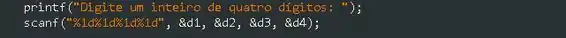 Observe que o especificador de conversão %1d é usado para obter cada dígito no inteiro fornecido.