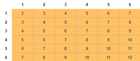Lançando dados. Escreva um programa que simule o lançamento de dois dados. O programa deverá usar rand para lançar o primeiro dado, e deverá usar rand novamente para lançar o segundo dado. Em seguida, a soma dos dois valores deverá ser calculada. [Nota: como cada dado pode mostrar um valor inteiro de 1 a 6, então, a soma dos dois valores variará de 2 a 12, com 7 sendo o resultado mais frequente; e 2 e 12, os resultados menos frequentes.] A Figura 6.23 mostra as 36 combinações possíveis dos dois dados. Seu programa deverá lançar os dois dados 36.000 vezes. Use um array de subscrito único para contar o número de vezes em que cada resultado possível aparece. Imprima os resultados em um formato tabular. Além disso, determine se os resultados são razoáveis; ou seja, existem seis maneiras de somar um 7, de modo que um sexto de todas as jogadas, aproximadamente, deverá ser 7.